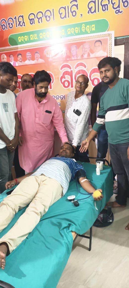 ଯାଜପୁର: ଭାରତୀୟ ଜନତା ପାର୍ଟି, ଯାଜପୁର ନିର୍ବାଚନ ମଣ୍ଡଳୀର କାର୍ଯ୍ୟକର୍ତ୍ତାଙ୍କ ଦ୍ଵାରା ମକେଇପୁର କାର୍ଯ୍ୟାଳୟ ପରିସରରେ ଏକ ରକ୍ତ ଦାନ ଶିବିର ଆୟୋଜିତ ହୋଇଯାଇଛି।