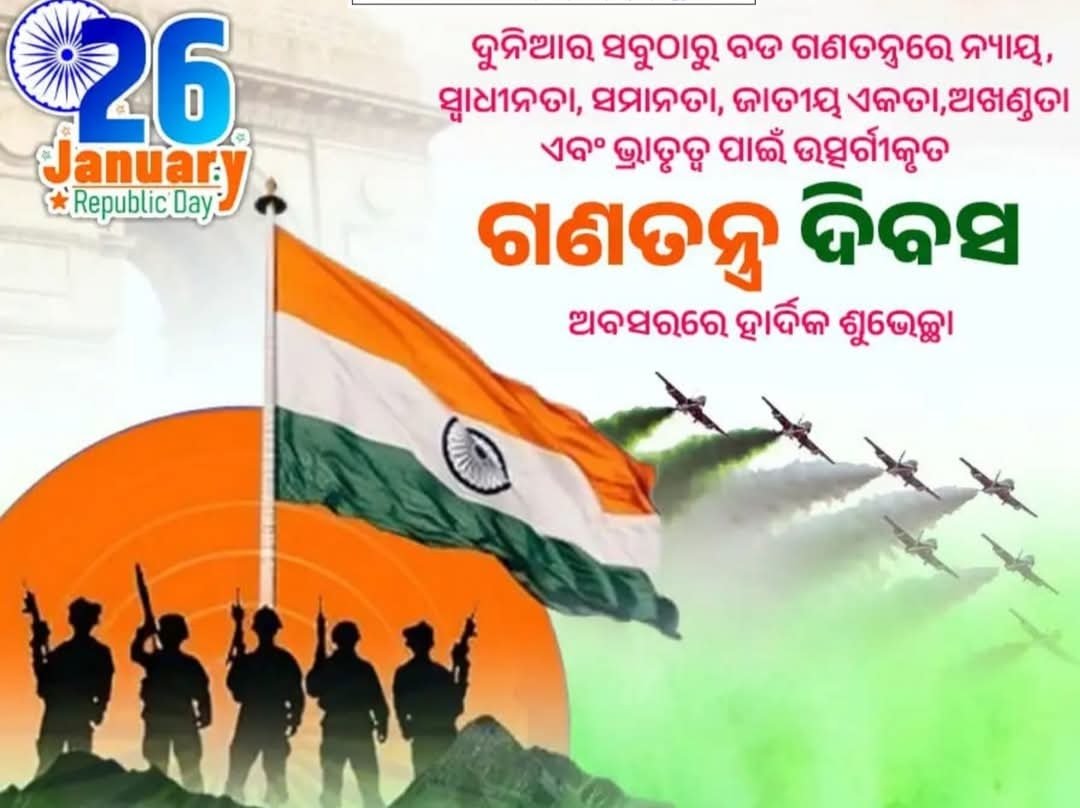 ଆମ ସ୍ଵତନ୍ତ୍ରତା ଓ ସମୃଦ୍ଧିର ରାଷ୍ଟ୍ରୀୟ ପର୍ବ ଗଣତନ୍ତ୍ର ଦିବସ ଅବସରରେ Odisha Not Out ତରଫରୁ ହାର୍ଦ୍ଦିକ ଶୁଭେଛା ଓ ଶୁଭକାମନା।